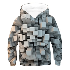 Gutt 3D Grafisk Geometrisk Hattetrøje Langermet Vår Høst Mote Gatemote Barn 4-12 år Med hette utendørs Avslappet Daglig Normal