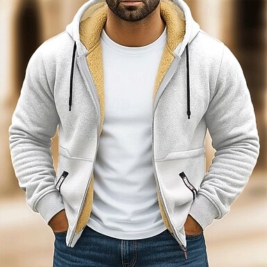 Herre Hettegenser Hettegenser med glidelås Svettejakke Sherpa Svart Hvit Vin Militærgrønn Navyblå Med hette Helfarge Glidelås Kul Fritid Essensielt Vinter Klær Gensere Gensere Langermet