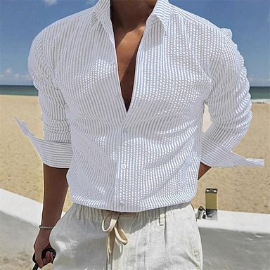 Herre Skjorte Sommerskjorte Uformell skjorte Strandskjorte Skjorte med knapper Svart Hvit Lysegrønn Rød Blå Langermet Stripe Knaphul Feriereise Hawaiisk Klær Polyester Mote Fritid Bekvem