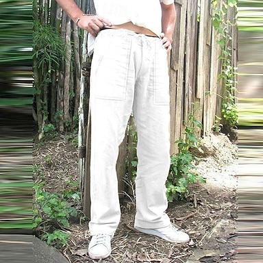 Herre Linbukser Bukser Sommerbukser Posete bukser Elastisk mansjett عادي Komfort Pustende Full lengde Avslappet Daglig Ferie Ferie Mote Svart Hvit