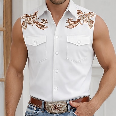 Herre Blomstermønster Årgang Western skjorte Cowboyskjorte Ermeløs skjorte Ermeløs vestlig stil utendørs Arbeid Avslappet Sommer Vår Aftæpning 3D-utskrift Skjorter med knapper Blå Hvit Lilla Grønn