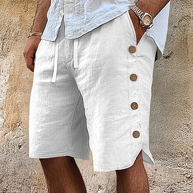 Herre Shorts Lin Shorts Sommershorts Strandshorts Elastisk midje Snorer Knapper عادي Komfort Pustende Knelengde utendørs Daglig Strand Ferie Mote Svart Hvit Uelastisk