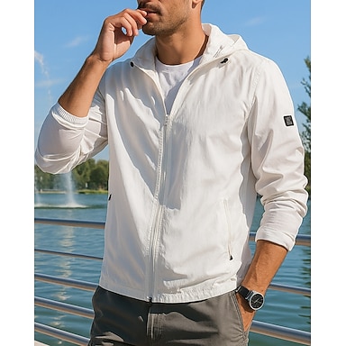 Herre Ensfarget Joggejakke Utejakke Sommer Vår Full glidelås Langermet Atletisk Solbeskyttelse Hurtigtørkende Lettvekt Pustende Tennis Golf Løp Hvit lysegrå Lyseblå Sports Sportsklær