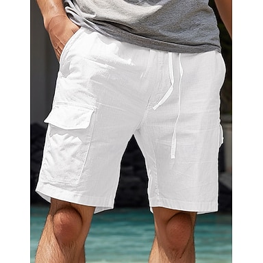 Herre Cargoshorts Lin Shorts Sommershorts Strandshorts Snorer Elastisk midje Multi lomme عادي Komfort Pustende Knelengde Hjem Daglig Strand Mote Smart Casual Hvit Navyblå Uelastisk