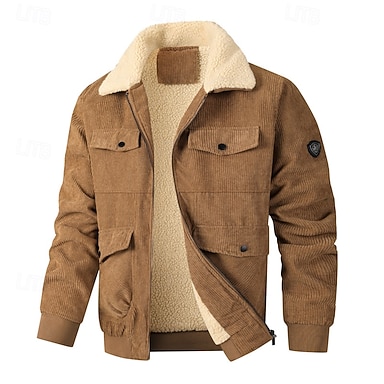 Herre Kordfløyel jakke Fleece-jakke Formell Hjem Hold Varm Lomme Fleece krage Høst Vinter Helfarge Aktiv Nøytral Normal Svart Brun Grå Jakker