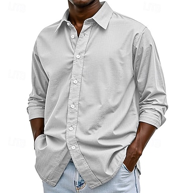 Herre Bomullsskjorte Svart Hvit Kakifarget Mørkegrå Lyseblå Langermet عادي Knaphul Feriereise Klær Mote Fritid Bekvem