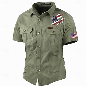 Herre Amerikansk amerikansk flagg Flagg / Nasjonalflagg Arbeidsskjorter Western skjorte Cargo skjorte Kortermet Fritid Taktisk Sport & Utendørs Ut på byen Sommer Vår Aftæpning Trykt mønster