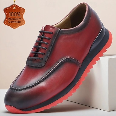 førsteklasses sneakers av okseskinn for menn – vintage fritidssko med snøring med fargeblokkdesign for hverdags- og motebruk