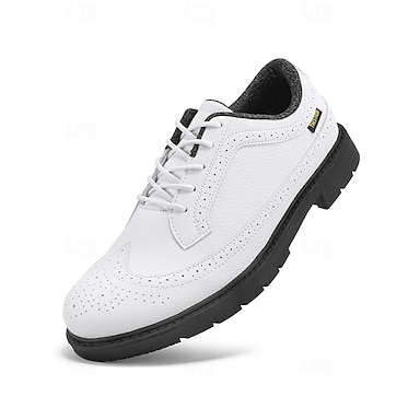 hvite golfsko for menn – lette snøresko i kunstskinn med komfortabel såle for golf og utendørssport