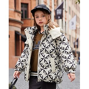 Barn Jente Dunjakke Pufferjakke Geometrisk Sport Lomme Hold Varm Vindtett utendørs Frakk Yttertøy 5-12 år Vinter Svart Hvit Rosa