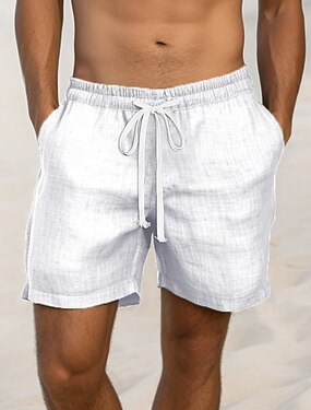 Herre Shorts Lin Shorts Sommershorts Snorer Lomme Elastisk midje عادي Komfort Pustende Kort Avslappet Daglig Ferie Mote Klassisk Stil Svart Hvit