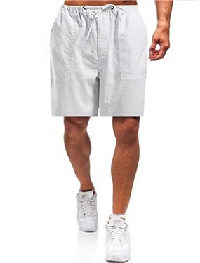 Herre Shorts Lin Shorts Sommershorts Strandshorts Løstsittende shorts Snorer Lomme Elastisk midje عادي Komfort Pustende Knelengde Daglig utendørs Ferie Klassisk Stil Fritid Svart Hvit Uelastisk