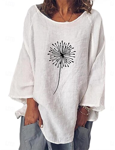 Dame Bluse Imitert bomullslin Lapper Trykt mønster Grafisk Stilfull Klassisk Moderne Langermet Båthals Vanlige topper Daglig Ferie Ut på byen Svart Hvit Gul Rød lysegrå Sommer Vår