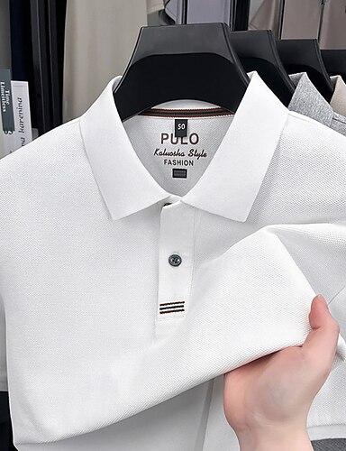 Herre Vaffel poloskjorter Med Tekstur Avslappet Arbeid Knaphul Kortermet Grunnleggende Moderne Grafisk Med Tekstur Kjøling Ice Silk Vår sommer Svart Hvit Navyblå Lyseblå Vaffel poloskjorter