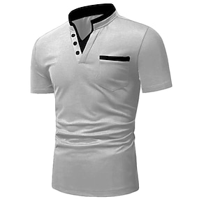 Herre Golfskjorter uten krage Skjorte med båndkrage Gate Avslappet Med åpning V-hals Kortermet Mote Grunnleggende عادي Knapp Sommer Normal Svart Hvit Navyblå Grå Golfskjorter uten krage