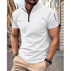 Herre Zip Polo Golf poloskjorter Avslappet Arbeid Knaphul Ribbet polokrage Kortermet Grunnleggende Moderne Helfarge Geometrisk Jacquard Knapper Vår Vår sommer Alle årstider Normal Svart Hvit Navybl