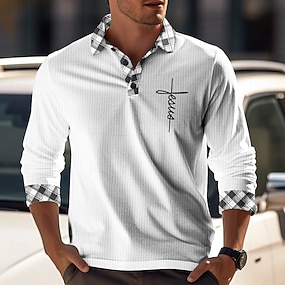 Herre Poloskjorter Golf skjorte Gate Avslappet Knaphul Langermet Grunnleggende Moderne Fargeblokk Lapper Knapper Vår Høst Normal Hvit Poloskjorter