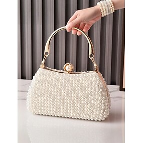 Dame-clutch med perlemotiv og gullhåndtak, elegant veske til bryllup, cocktailfest og formelle arrangementer – tilgjengelig i flere farger