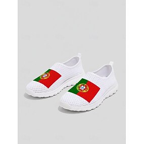 Slip-on-sneakers med portugisisk flagg til dame – lette, avslappede nettingsko for fotballfans, reiser og hverdagsbruk