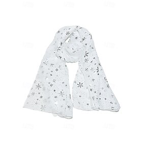 Julesnøfnuggskjerf til dame, festlig rødt og hvitt design med metalliske snøflak, mykt polyestermateriale, perfekt for høytidsfester og vinterklær