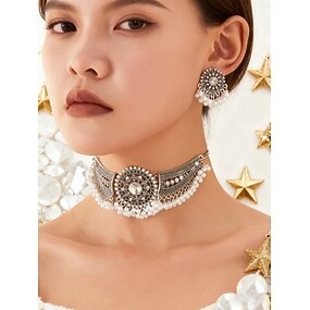 Damesett med sølvperlechoker til julebord, vintage krystallkjede og øredobber til høytidsfeiringer &elegante kveldsarrangementer