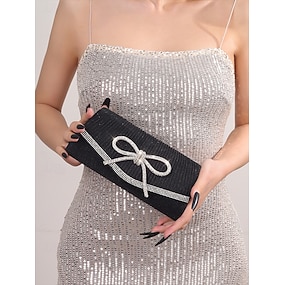 blå glitter-clutch-veske med rhinestone-sløyfeaksent, elegant kveldsveske for kvinner, perfekt for bryllup, fester og formelle arrangementer sølv svart blå