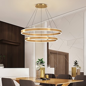 led pendellampe 60/75cm 3/4-lys ring sirkeldesign dimbar aluminium luksuriøs moderne stil spisestue soverom pendellamper 110-240v kun dimmes med fjernkontroll