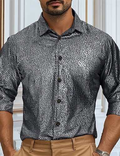 Herre Skjorte Uformell skjorte Svart Lilla Gull Grå Langermet Helfarge Krage Ytelse Jul Klassisk Stil Klær Jul Årgang Fest disco