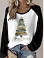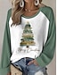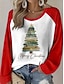 Dame Genser med genser Grafisk Juletre Jul Fritid Langermet Crew-hals Vanlige topper Gate Hverdag Avslappet Svart Hvit Lysegrønn Rød Høst Vinter