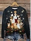 Dame Gensere Grafisk Katt Jul Fritid Langermet Crew-hals Vanlige topper Avslappet Ferie Trykt mønster Blå Lilla Grønn Grå Høst Vinter
