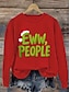 Dame Pullover Grafisk Bokstaver Jul Varm Klassisk Fritid Langermet Crew-hals Rund hals Vanlige topper Hjem Gate Hverdag Trykt mønster Svart Hvit Rød Grønn Høst Vinter