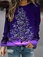 Dame Genser med genser Hettegensere Grafisk Juletre Jul Mote Fritid Langermet Crew-hals Vanlige topper Gate Hverdag Avslappet Trykt mønster Vin Rød Blå Lilla Fuksia Høst Vinter