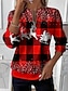 Dame Genser med genser Zip Up sweatshirts Grafisk Ruter Jul Mote Fritid Langermet Crew-hals Vanlige topper Gate Hverdag Avslappet Glidelås Trykt mønster Rød Blå Lilla Grønn Høst Vinter