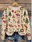 jul damegensere grafisk julenissen vintage avslappet langermet rund hals vanlig topper gate hverdagsbruk avslappet trykk svart hvit rød blå høst vinter