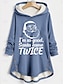 Dame Pullover hettegenser-genser Bokstaver Jul Fritid Langermet Med hette Vanlige topper Gate Hverdag Trykt mønster Rosa Blå Grå Høst Vinter
