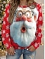Dame Pullover Grafisk julenissen Jul Fritid Langermet Crew-hals Vanlige topper Avslappet Ferie Trykt mønster Rosa Rød Blå Vår Høst Vinter