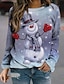 Dame Genser med genser Hettegensere Grafisk Snømann Jul Mote Fritid Langermet Crew-hals Vanlige topper Gate Hverdag Avslappet Trykt mønster Svart Rød Blå Lilla Fuksia Høst Vinter