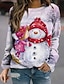 Dame Genser med genser Hettegensere Grafisk julenissen Snømann Mote Fritid Langermet Crew-hals Vanlige topper Gate Hverdag Avslappet Trykt mønster Blå Høst Vinter