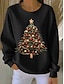 Dame Pullover hettegenser-genser Grafisk Juletre Jul Fritid Langermet Med hette Vanlige topper Festkveldsklær Gate Hverdag Svart Vår Høst Vinter