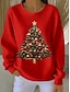 Dame Genser med genser Grafisk Juletre Jul Mote Fritid Langermet Crew-hals Vanlige topper Gate Hverdag Avslappet Trykt mønster Rød Blå Mørkeblå Vår Høst Vinter