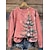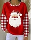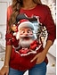 Jul Dame T skjorte Grafisk julenissen Årgang Mote Stilfull Langermet Crew-hals Rund hals Vanlige topper Daglig Helg Trykt mønster Svart Hvit Rosa Rød Blå Vår Høst Vinter