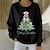 Dame Gensere Grafisk julenissen Årgang Mote Fritid Langermet Crew-hals Vanlige topper Gate Avslappet Trykt mønster Svart Kakifarget Høst Vinter