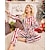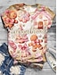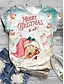Jul Dame T skjorte Grafisk julenissen Årgang Stilfull Klassisk Kortermet Crew-hals Rund hals Vanlige topper Daglig Trykt mønster Hvit Lysegrønn Rosa Rød Blå Høst Vinter