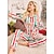 Jul Dame Skjorte julenissen Juletre Snøfnugg Elegant Årgang søt stil Langermet V-hals Vanlige topper Festkveldsklær Daglig Ferie Kontrast blonder Lapper Knapper Rød Lilla Grønn Vår Høst Vinter Vår
