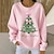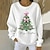 Dame Genser med genser Grafisk julenissen Juletre Mote Fritid Langermet Crew-hals Vanlige topper Gate Hverdag Avslappet Trykt mønster Vin Rød Grønn Beige Høst Vinter