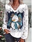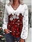 Jul Dame T skjorte Grafisk julenissen Snøfnugg Årgang Stilfull Klassisk Langermet Crew-hals V-hals Vanlige topper Daglig Knapper Trykt mønster Asymmetrisk Svart Rød Blå Grønn Vår Høst Vinter