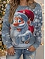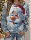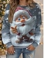 Dame Genser med genser Grafisk julenissen Jul Fritid Langermet Crew-hals Vanlige topper Gate Avslappet Ferie Trykt mønster Blå Mørkeblå Lyseblå Vår Høst Vinter