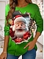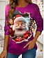 Jul Dame T skjorte Grafisk julenissen Mote Fritid Langermet Crew-hals Rund hals Vanlige topper Daglig Helg Trykt mønster Rød Blå Lilla Grønn Sommer Vår Høst Vinter