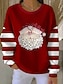 Dame Genser med genser Grafisk julenissen Stripet Fritid Langermet Crew-hals Rund hals Vanlige topper Gate Hverdag Avslappet Hvit Rød Høst Vinter