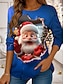 Jul Dame T skjorte Grafisk julenissen Jul Elegant Årgang Mote Langermet V-hals Vanlige topper Daglig Helg Trykt mønster Rosa Dusty Rose Rød Grønn Lyseblå Vår Høst Vinter